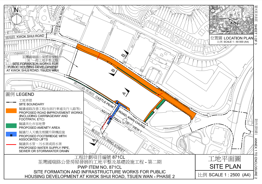 - construction of a footbridge across Castle Peak Road – Kwai Chung and associated lift facilities;